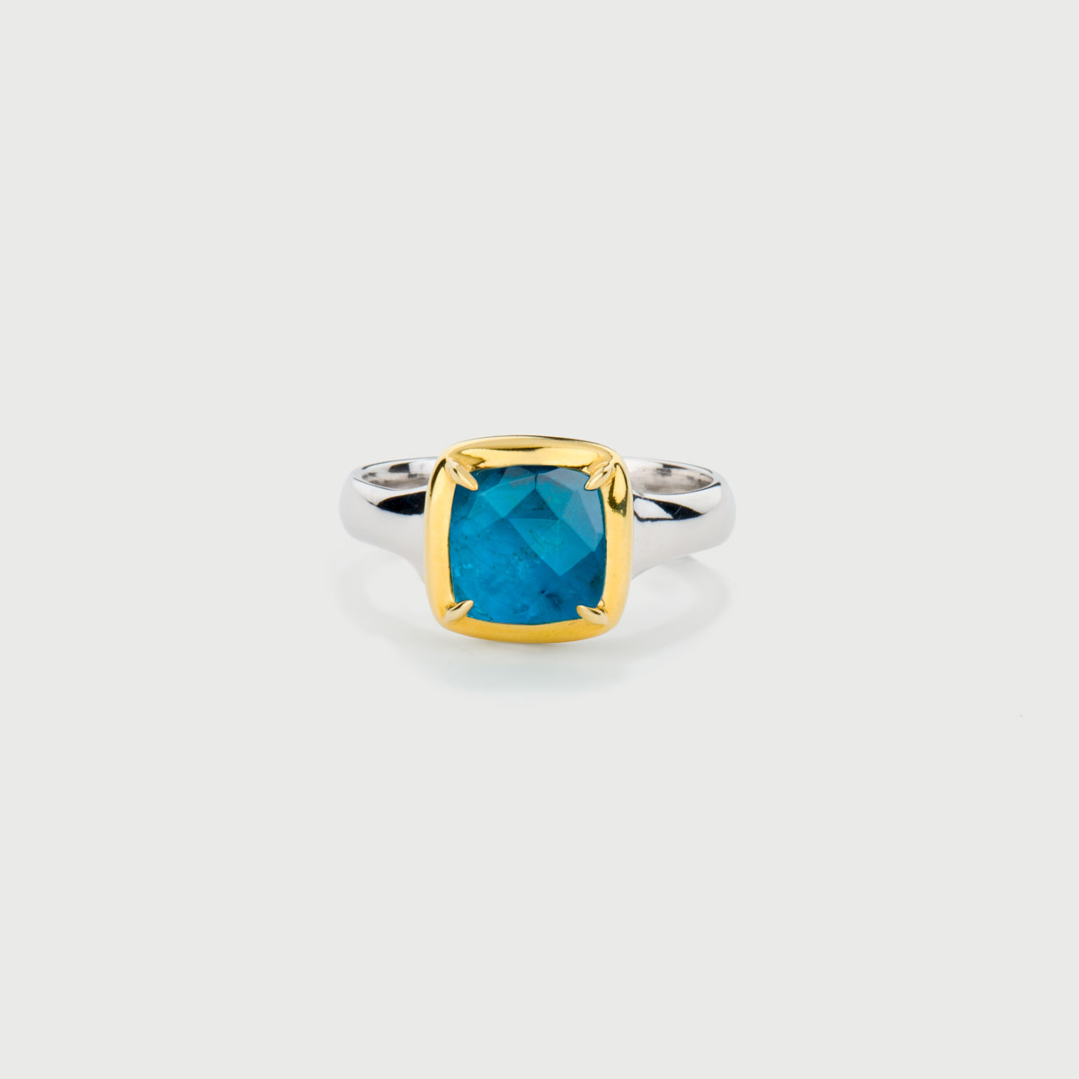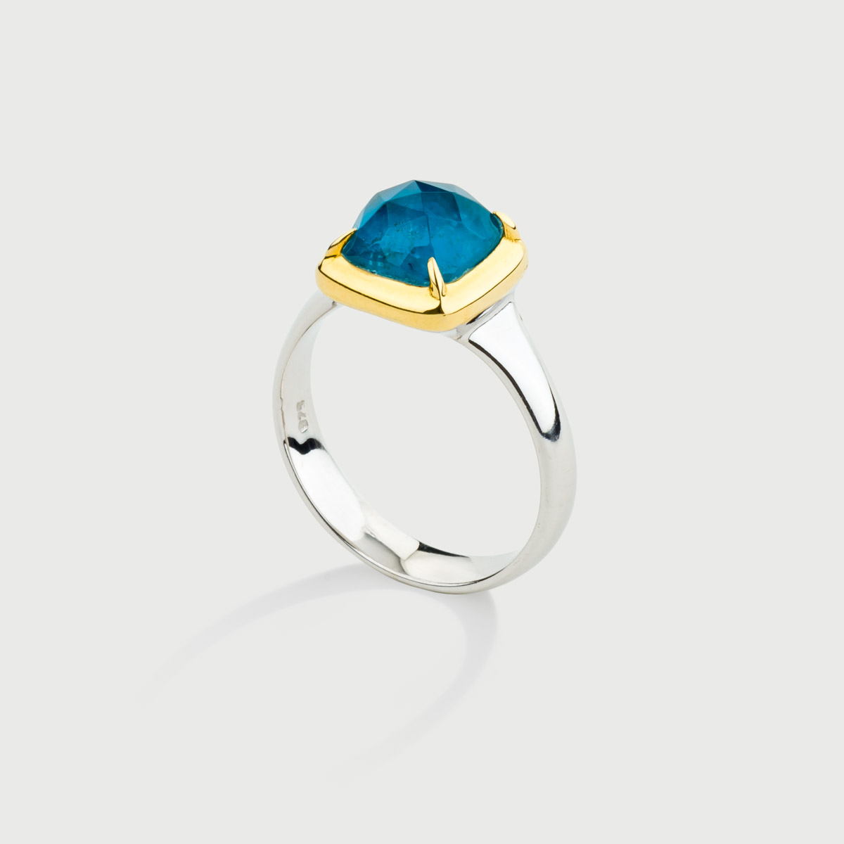 Doublet Crystal Quartz with Apatite Gold Plated Silver Ring