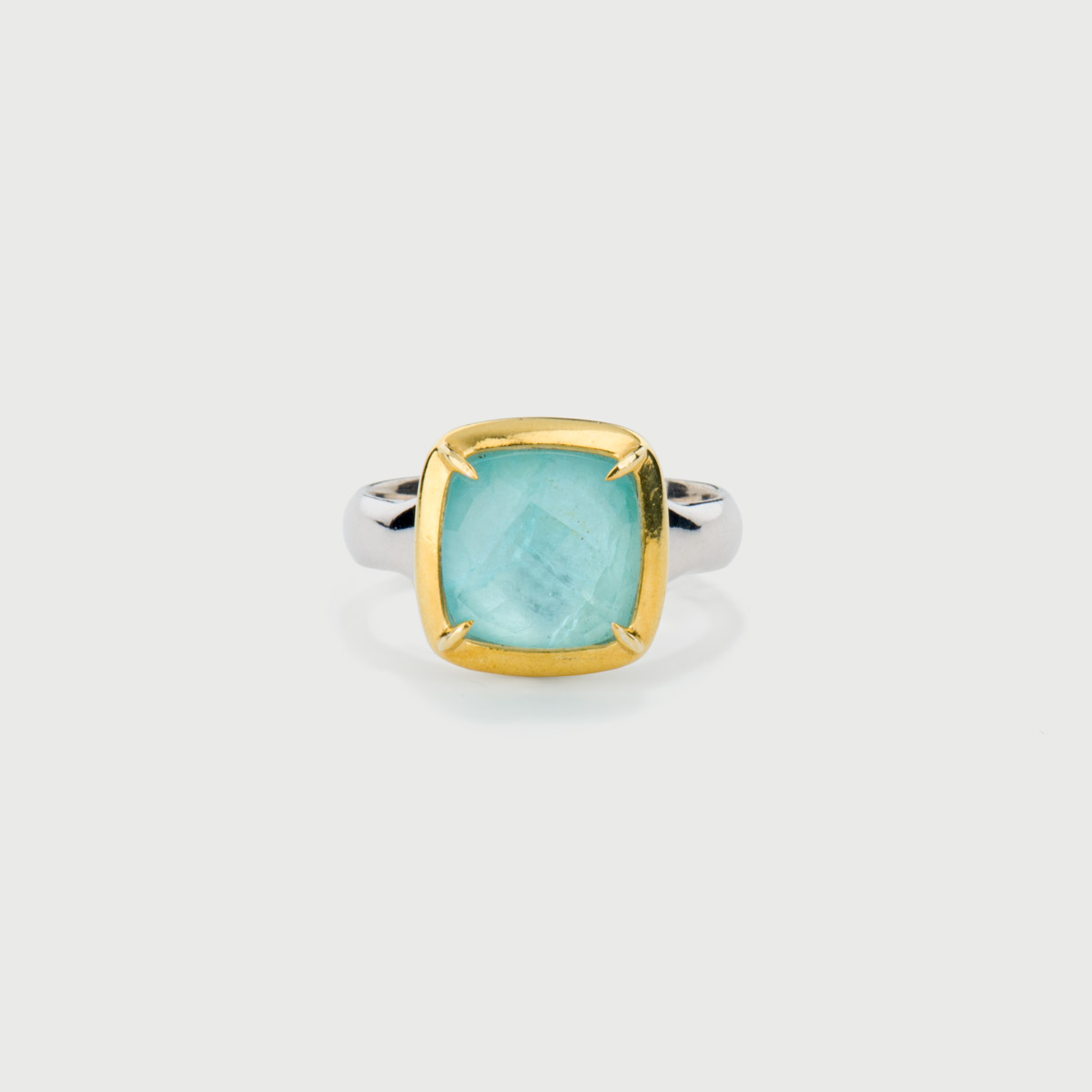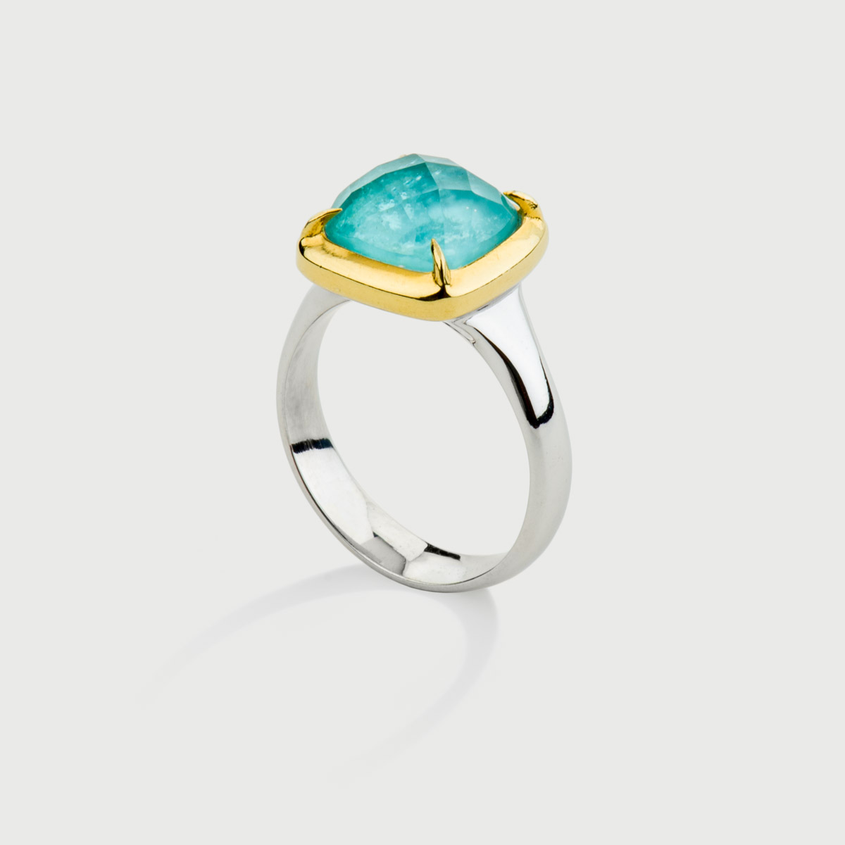 Doublet Crystal Quartz with Aquamarine Gold Plated Silver Ring