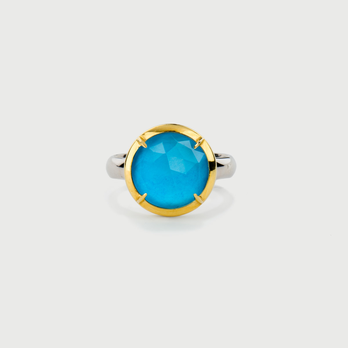 Doublet Crystal Quartz with Turquoise Gold Plated Silver Ring